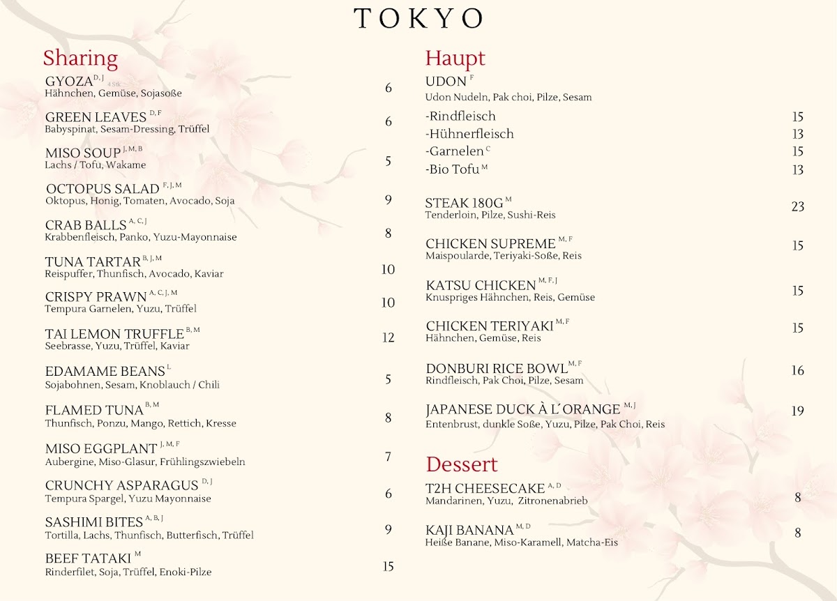 Tokyo to Hanoi Menu